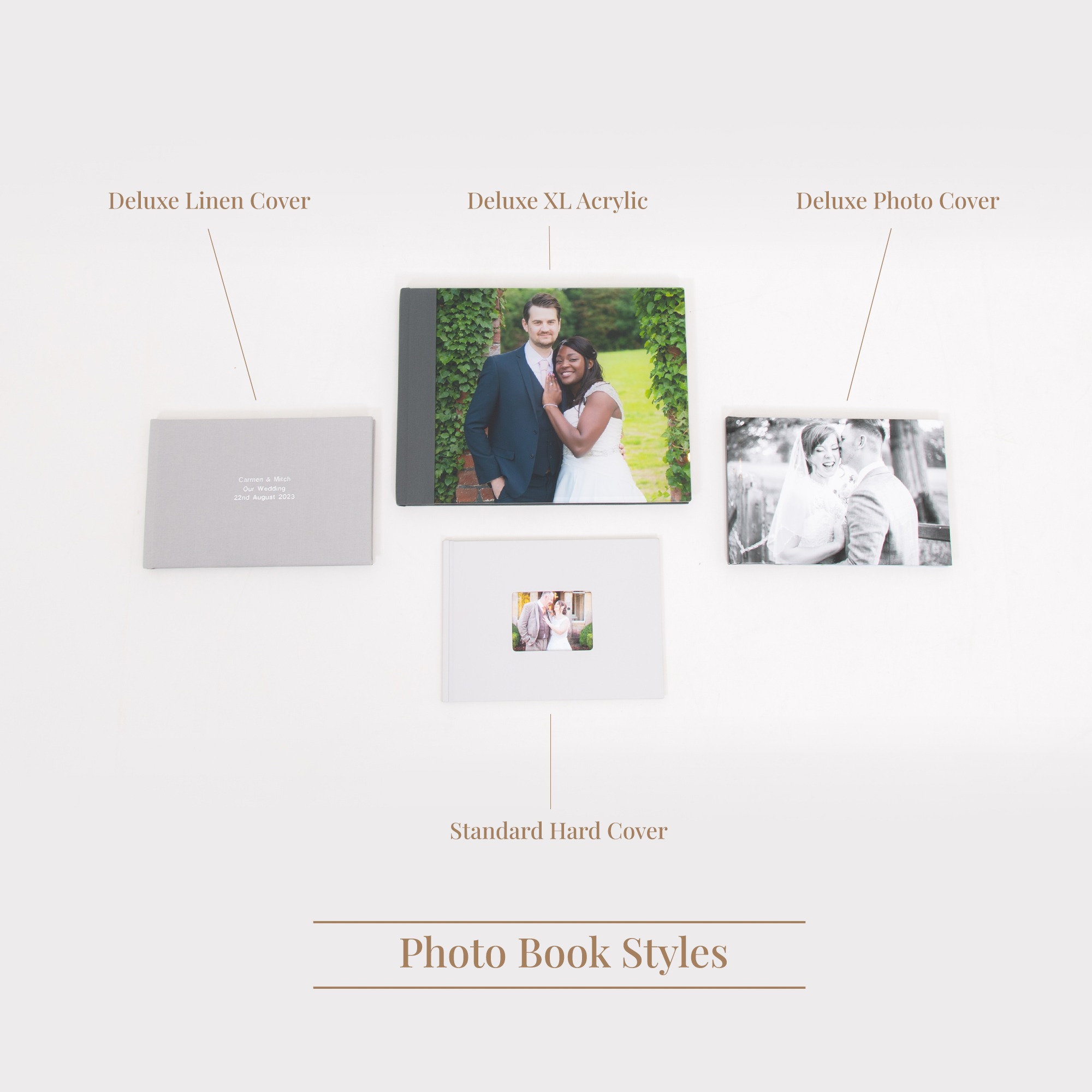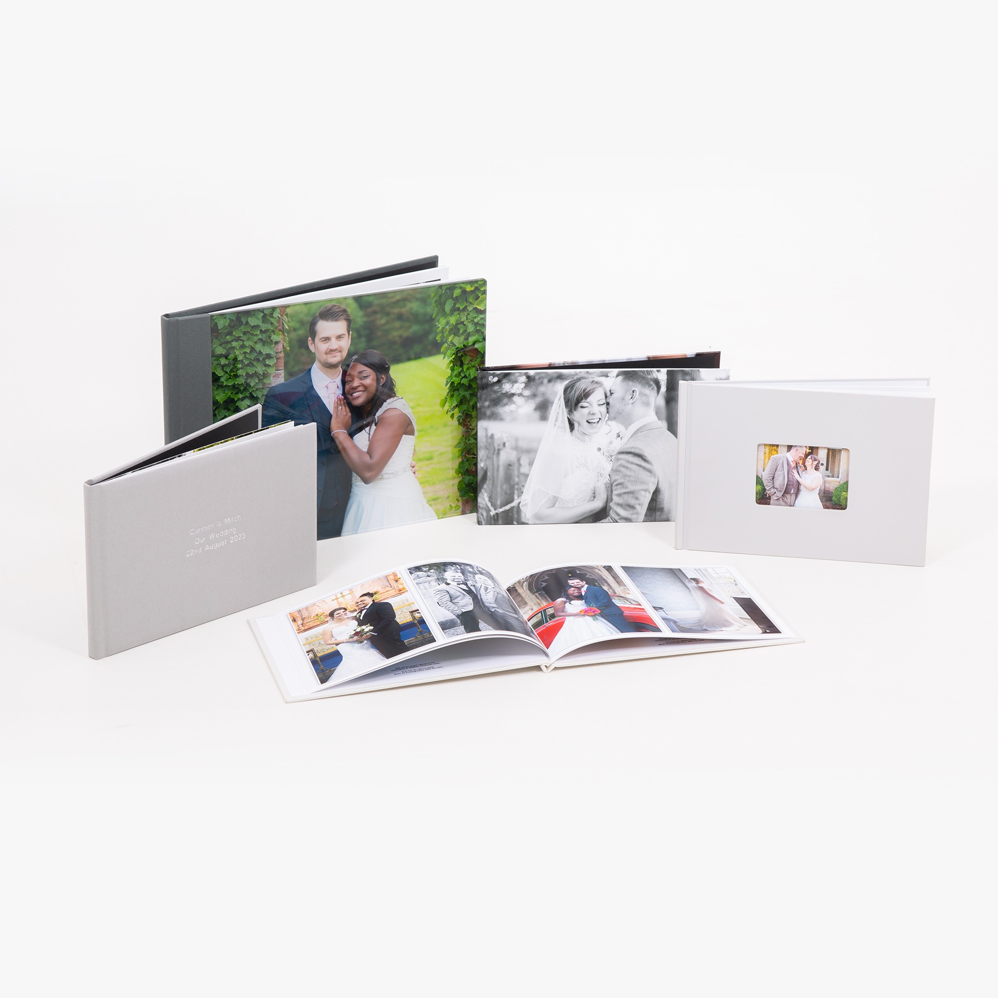 We are so thrilled to offer beautiful quality photo books in a wide variety of styles to suit all budgets. Our high-quality digitally printed photo books showcase your favourite images in a timeless, stylish and contemporary way. We have sourced photo books to suit most budgets, from the affordable all the way to the luxury, with each of them being wonderful quality and hard-wearing to last a lifetime. We also offer a variety of optional customisations to make the photo book exactly how you’d like it, including colour options, extra pages and more. We have samples available in our studio of all the photo books we offer. Below is a detailed look at every photo book and the options available, as well as a gallery showing the photo books in detail. We appreciate it’s a lot of details, so please contact us if you’d like any help.
