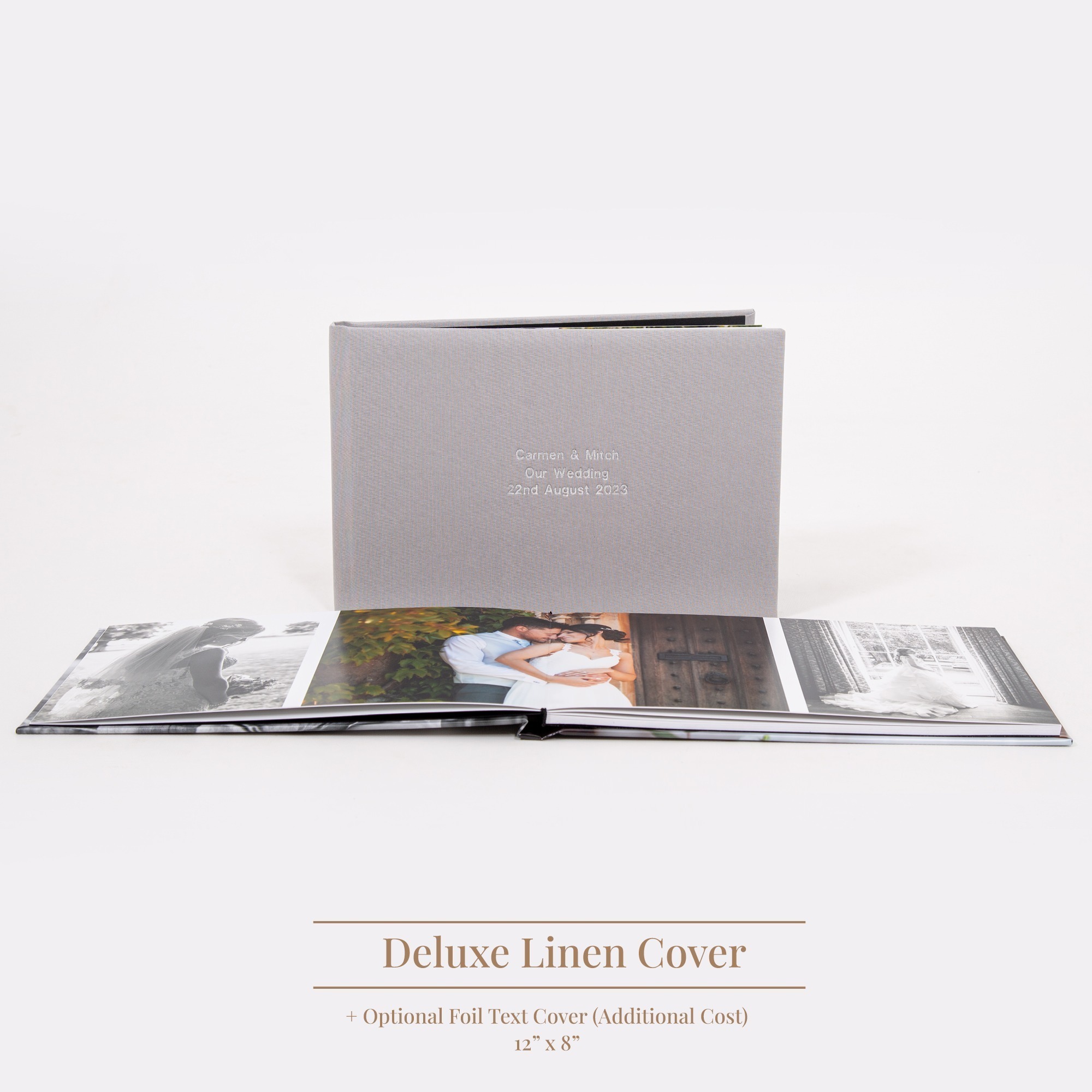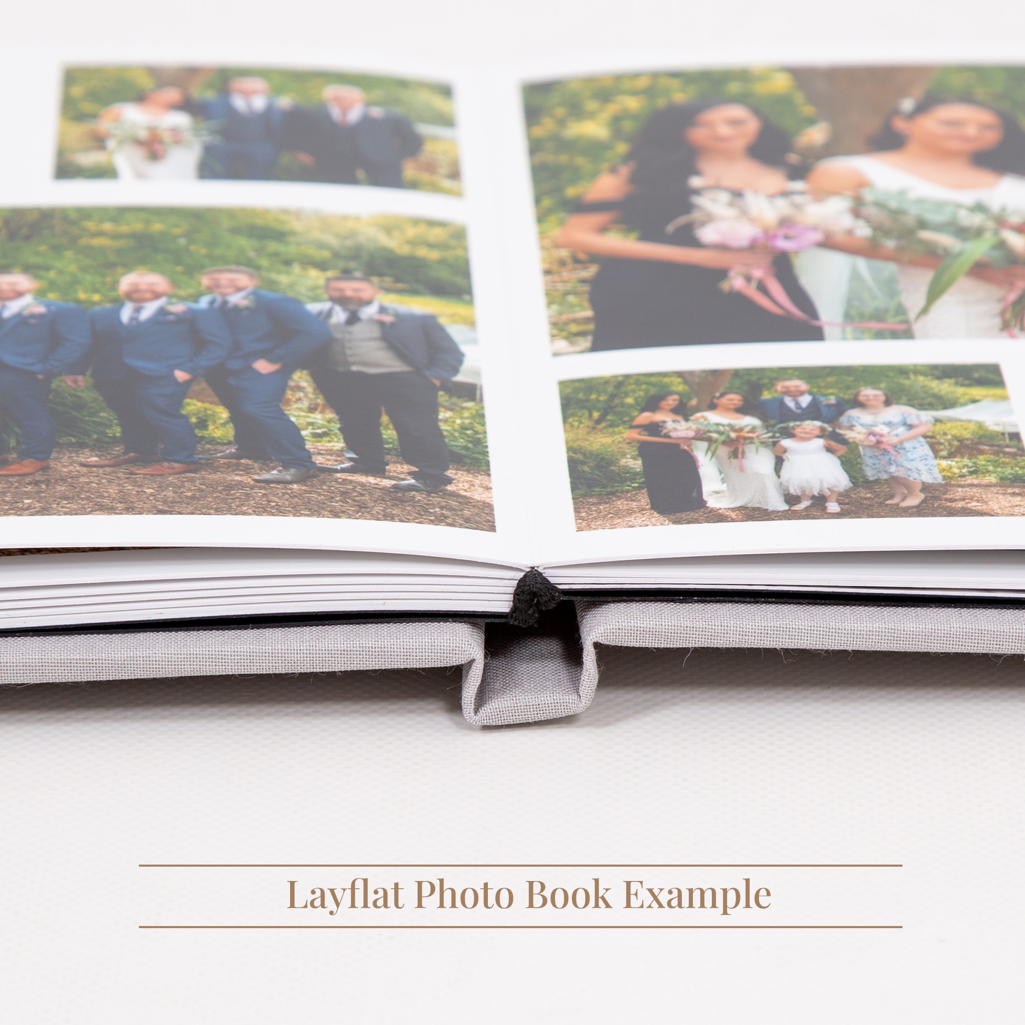 Our deluxe photo books are all ‘lay flat’ photo book albums. This means the pages of the photo book, when opened, lay flat so that photos can be used all the way across the spread of the page. It also means the books open fully, similar to high-end coffee table books, for an artistic and high-end presentation. The deluxe photo books also all come in a keepsake box and are wrapped in paper for further protection. The ‘Standard Hard Cover’ photo book does not have the ‘lay flat’ feature and is not provided in a keepsake box.